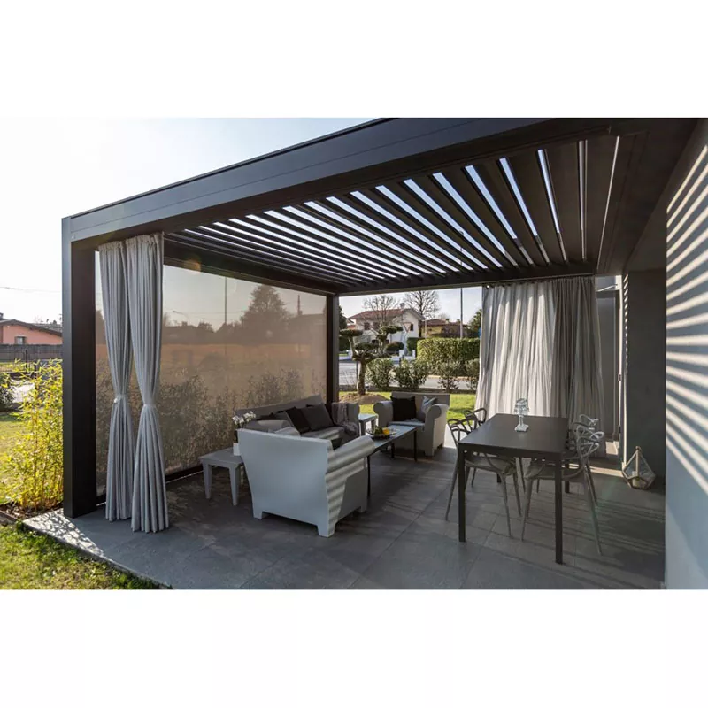 Биоклиматическая пергола представляет собой передовую систему затенения для наружного применения, в основе которой лежит концепция регулирования «экологического климата». Это позволяет точно контролировать воздействие солнечного света, вентиляцию и даже защиту от дождевой воды с помощью регулируемых алюминиевых жалюзи. Лезвия могут регулировать свой угол в зависимости от погодных условий и личных предпочтений, обеспечивая различные функции, такие как затенение, освещение, вентиляция и защита от дождя. По сравнению с фиксированными потолками биоклиматические перголы Vionta обеспечивают большую гибкость и адаптируемость, превращая вашу террасу, балкон или сад в яркую «комнату на открытом воздухе».