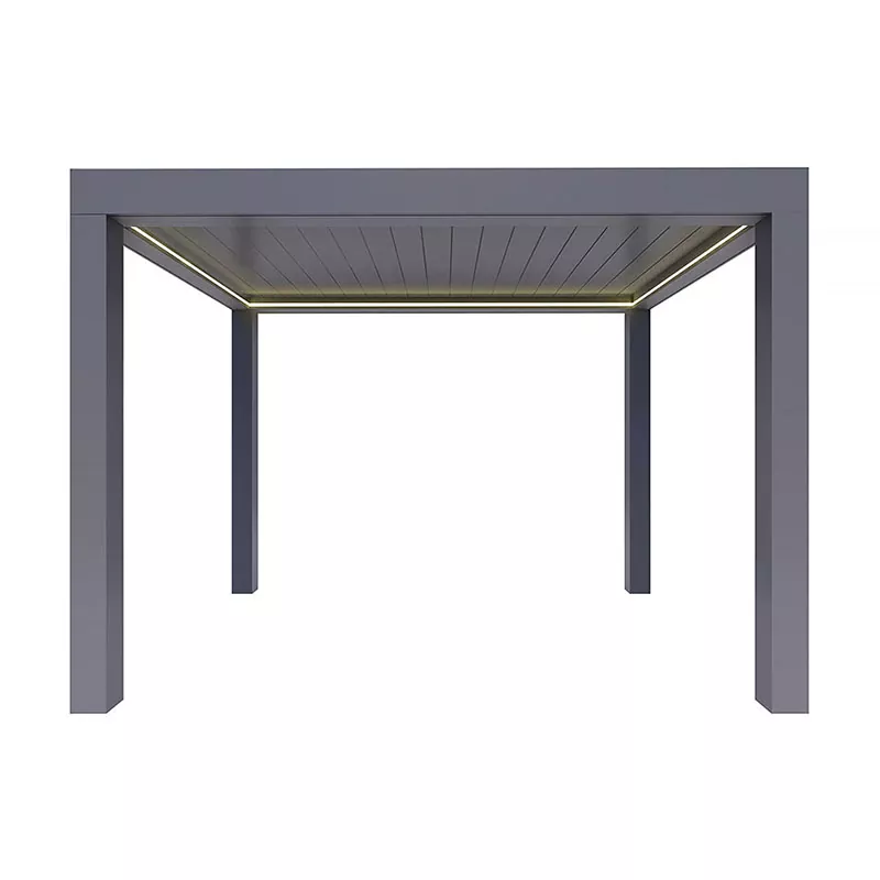 Биоклиматическая пергола Vionta оснащена регулируемыми жалюзи от 0° до 140°, что позволяет регулировать уровень затенения в зависимости от угла солнечного света в течение дня.