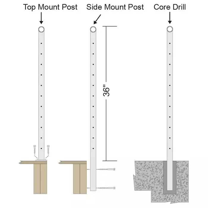 ● Кабель поставляется предварительно вставленным в перила, установщику нужно просто затянуть его.