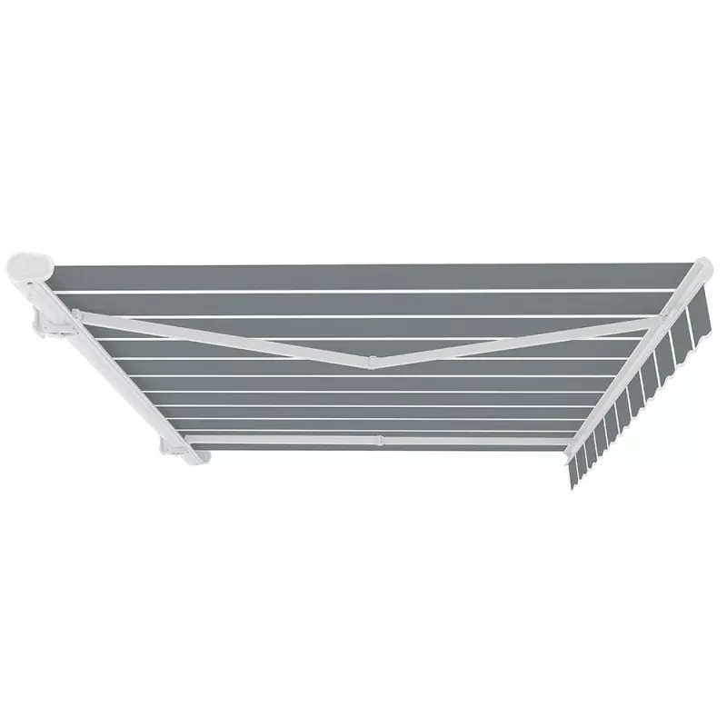 Они изготовлены по самым высоким стандартам и имеют прочную и легкую металлическую раму с алюминиевыми кронштейнами с порошковым покрытием. Их можно легко и плавно открывать и закрывать с помощью заводной ручки с левой стороны. Маркиза может быть открыта настолько, насколько вам хочется, вплоть до максимального выступа.