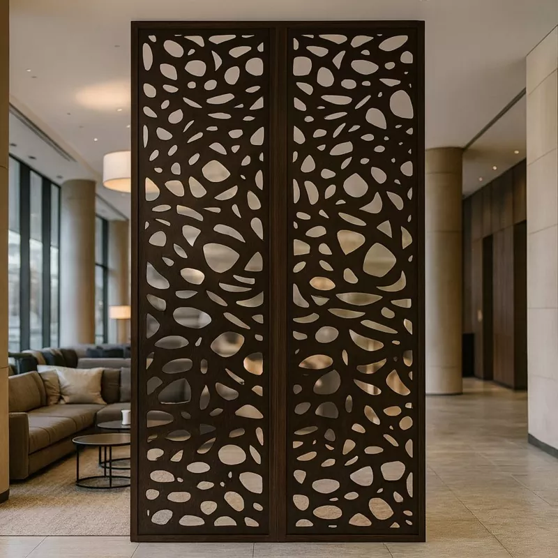 Каждый металлический экран, вырезанный лазером, представляет собой сочетание функциональности и искусства: