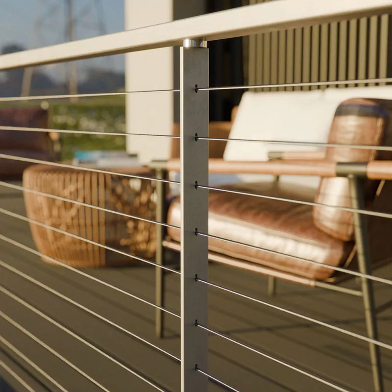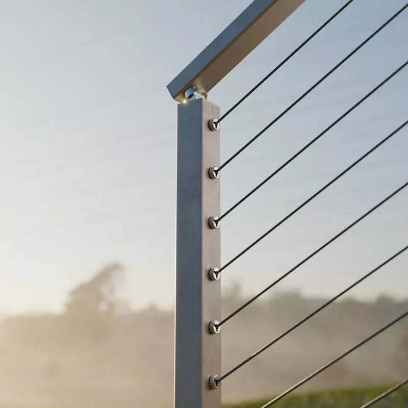 Проще говоря, перила из нержавеющей стали — это система перил, в которой вместо традиционных перил или стекла используются тросы из нержавеющей стали. Обычно он состоит из стоек, верхнего поручня и нескольких горизонтальных тросов. Общий дизайн минималистичный, визуально прозрачный и не загораживает обзор.